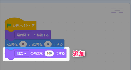 「(幽霊)の効果を(100)にする」