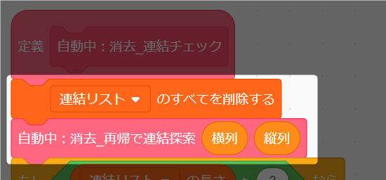 ■「自動中:消去_消える玉をチェック」ブロックで「同時消し色リスト」を初期する